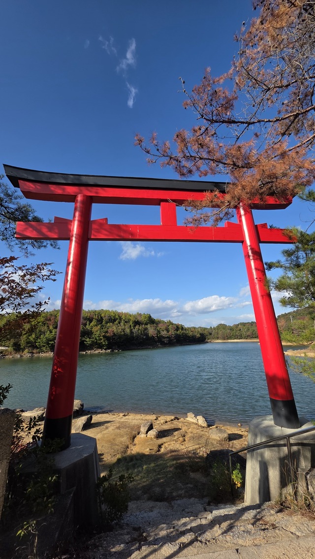 池の縁に赤い鳥居があってなんと素敵な景色でしょう(^^)